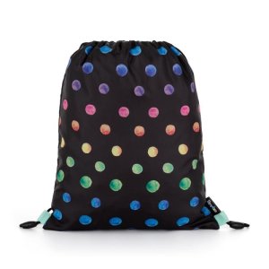 Vrecko na prezuvky. Uzatváranie stiahnutím šnúrok, možnosť nosiť aj na chrbte alebo pripevniť k školskému batohu.