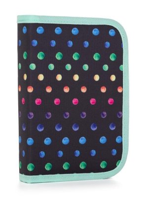 Školské puzdro etue je opatrené pevnými zipsami, vreckom na zips a klopou s pevnými pútkami po oboch stranách.