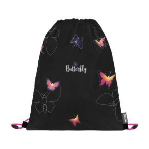 Vrecko na prezuvky. Uzatváranie stiahnutím šnúrok, možnosť nosiť aj na chrbte alebo pripevniť k školskému batohu.