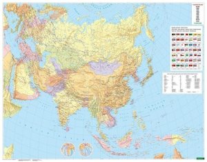 Príručná mapa praktického formátu ponúka prehľadné spracovanie všeobecného zemepisu Ázie.