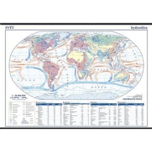 Mapa svetovej hydrosféry prehľadne zobrazuje najdôležitejšie vodné toky a plochy sveta, vymedzuje hlavné svetové úmoria a zobrazuje smer a charakter morských prúdov.