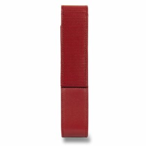 Puzdro z mäkkej červenej nappa kože s vyrazenými prúžkami na zatváracej klope, pre 1 pero.