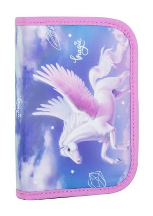 Dievčenské školský peračník, jednochlopňový s množstvom gumičiek, motív jednorožec