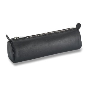 Okrúhle čierne kožené puzdro Lamy s vnútornou textilnou podšívkou.
