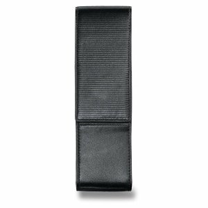 Puzdro z mäkkej čiernej nappa kože s vyrazenými prúžkami na zatváracej klope, pre 2 perá.