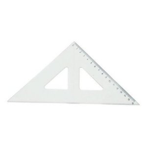 Priehľadné trojuholníkové pravítko s ryskou vhodné do hodín matematiky a geometrie.