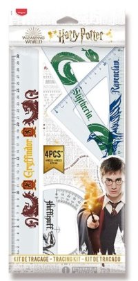 4-dielna sada geometrických potrieb s motívom Harryho Pottera obsahuje: Dve trojuholníkové pravítka - trojuholník 60 °, 21 cm a trojuholník 45 °, 21 cm.