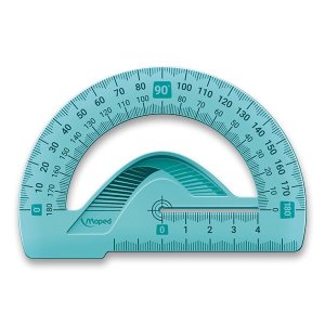 Školský uhlomer na meranie a určenie rysovaných uhlov do 180°.