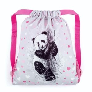 Vrecko na prezuvky. Uzatváranie stiahnutím šnúrok, možnosť nosiť aj na chrbte alebo pripevniť k školskému batohu.
