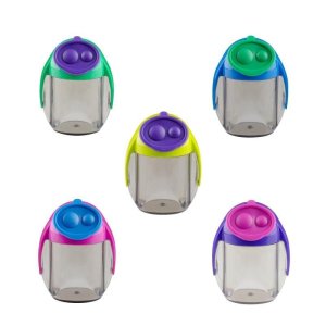 Dvojité plastové strúhadlo so zásobníkom Pre jumbo aj štandardné ceruzky Čepeľ z kvalitnej ocele vyrobenej v Nemecku Dodávame v mixe 5 pastelových farieb