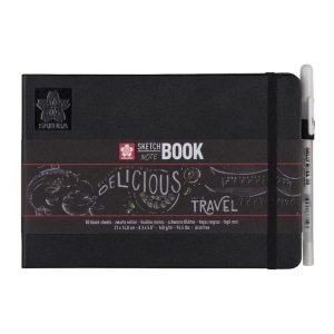Skicak/zápisník Sakura s rozmermi 21 x 14,8 cm (A5) s 80 čiernymi listami bezkyselinového papiera 140 g/m2 uchováva všetky vaše výtvory vytvorené tušou, ceruzkou, olejovým pastelom alebo uhlím na jednom …