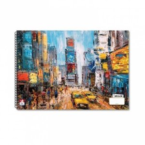 Skicak vo veľkosti A5+ (178 x 240 mm) má lepené dosky na dlhšej strane skicáku.