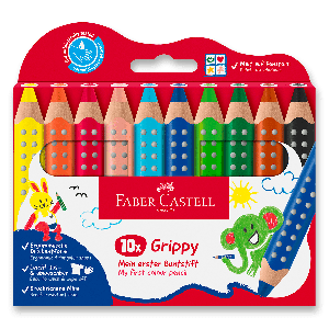 Sada kvalitních trojhranných pastelek Faber-Castell Grippy s patentovanou GRIP zónou v extra silném provedení.