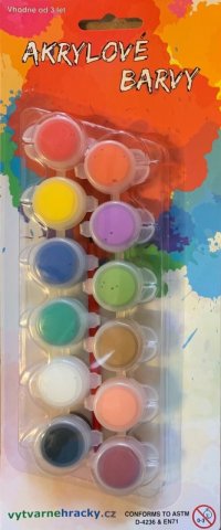 12 akrylových farieb v hliníkovej tube, každá s objemom 12 ml.