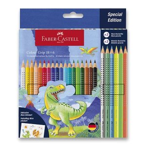 Súprava 24 ks kvalitných drevených pasteliek colour grip dinosaurus (18+6) trojuholníkového tvaru s tématikou dinosaura.