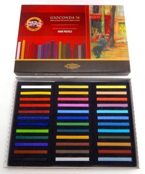 Suché pastely hranatého tvaru vyrobené z jemných pigmentov, ktoré vytvárajú ich hladký povrch.