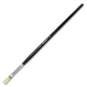 Plochý štetec z odolných a pevných bravčových štetín je vhodný pre olejomaľbu či maľbu akrylovými farbami Krátka rukoväť s pochrómovanou objímkou