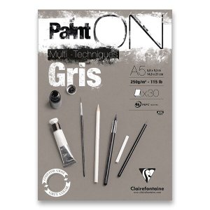Blok Clairefontaine Paint'ON Grey má šedý jemne hrubý papier zo 100% celulózy.