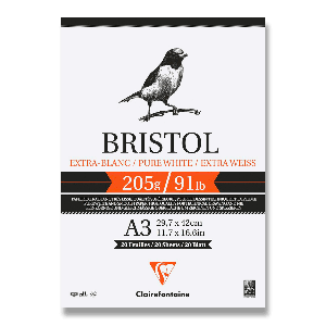 Blok Clairefontaine Bristol 205 g má extra biely a veľmi hladký papier.