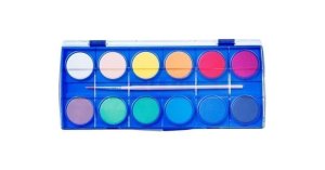 kvalitné vodové farby v plastovom puzdre vysoké krycie schopnosti žiarivé a sýte farby plastový obal je možné využiť ako paletu súčasťou je aj štetec 12 farieb, ø 24 mm