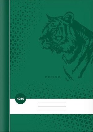 Školský zošit vo formáte A4, štvorčekový, v tmavo zelenej farbe, s motívom tigra, v doskách z kriedového papiera.