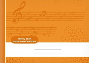 Školský notový zošit vo formáte A5 na šírku, v oranžovej farbe, v doskách z kriedového papiera.