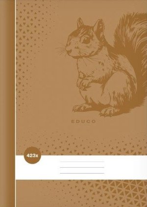 Školský zošit linajkový/čistý vo formáte A4, v hnedej farbe, s motívom veveričky, v doskách z kriedového papiera.