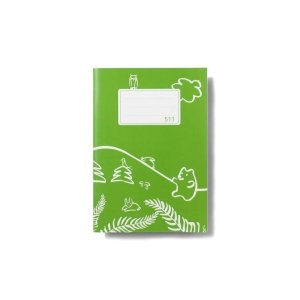 Školský linajkový zošit vo formáte A5, v zelenej farbe, s motívom žaby, v doskách z kriedového papiera.