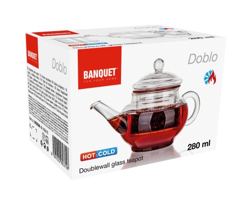 Sklenená čajová kanvička DOBLO, o max. objemu 280 ml, je vhodná na podávanie studených i teplých nápojov, ale predovšetkým na lúhovanie sypkých čajov. Praktický lúhovač je možné vybrať pre ľahké čistenie a spolu s kanvičkou sú vhodné do umývačky riadu.