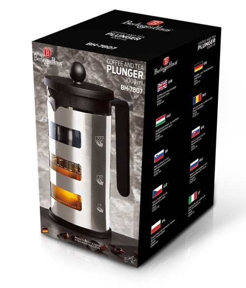 - French Press Black Silver Collection od značky BerlingerHaus s bohatým objemom 1 liter - kanvica typu French Press je vybavená odnímateľným filtračným piestom - jeho stlačením dochádza k oddeleniu kávovej …