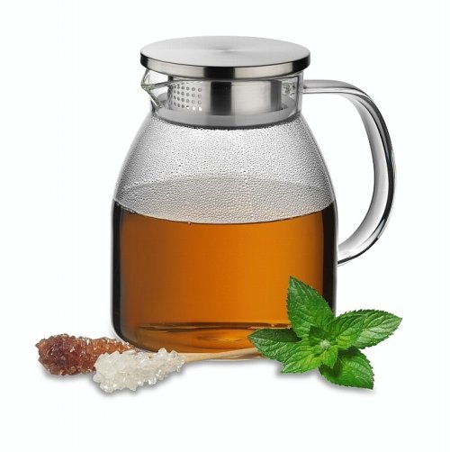 • materiál: žiaruvzdorné borosilikátové sklo - prvotriedna kvalita spracovania - veko z ušľachtilej nerezovej ocele 18/10 - silikónové tesnenie vo veku zabraňuje vniknutiu hmyzu alebo nečistôt do nápoja - pootáčaním viečka môžete meniť 2 druhy otvorov na nalievanie (viď obrázky) - možno ho teda použiť sitko, poprípade použiť väčší otvor, ak chcete nápoj nalievať aj s ovocím, bylinkami atď. - kanvica je ideálna na prípravu čaju, domácich limonád, ľadového čaju či koktailov alebo ako karafa na servírovanie vody s ovocím, atď. - výborne sa hodí pre studené aj horúce nápoje - dostatočne široké hrdlo umožňuje kanvicu bez problému naplniť kockami ľadu, väčšími kúskami ovocia, atď. - objem: 1.2 l - výška: 16 cm - značka: KELA