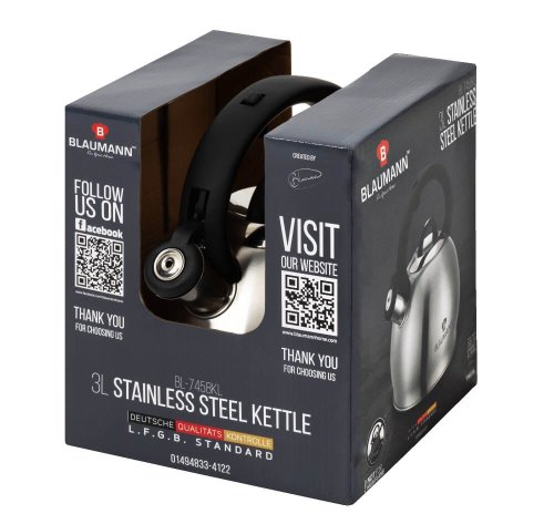 materiál: nerezová oceľ - rukoväť z kvalitného plastu - funkčná píšťalka - pohodlné otváranie a nalievanie jednou rukou - vhodné na všetky druhy sporákov aj na indukciu - bohatý objem: 3 l - metalická strieborná farba