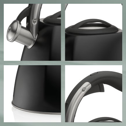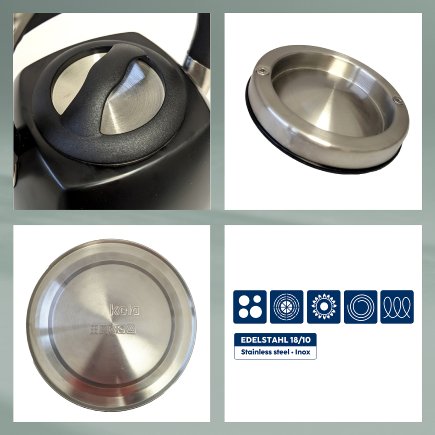 • materiál: nerezová oceľ 18/10 - matná čierna - rukoväť so zabudovaným otváraním píšťalky - rozmery 22 cm , 21,5 cm v, 2,4 l - vhodné na všetky druhy sporákov aj na indukciu - séria Vitus - značka KELA