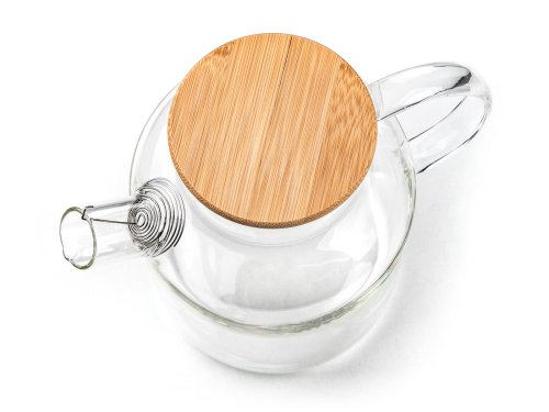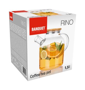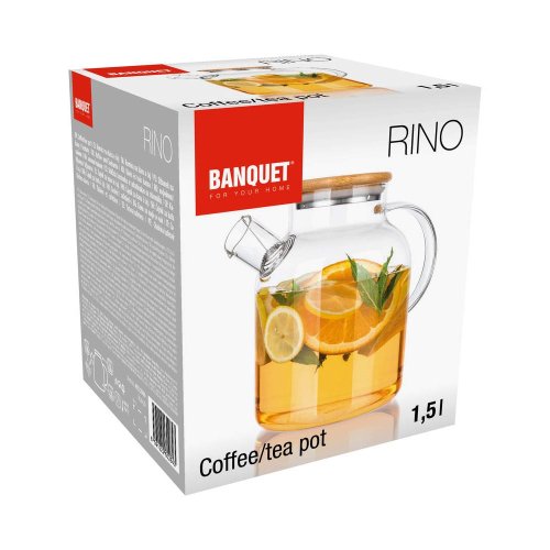 Kanvica na čaj aj kávu RINO má využiteľný objem 1,5 la je vyrobená z borosilikátového skla, ktoré je určené na horúce nápoje. Špirálové sitko zachytí bylinky pri nalievaní. Bambusové viečko s nerezovým krytom a silikónovým tesnením odoláva vlhkosti aj pachom. Iba sklenená nádoba je vhodná do umývačky. Hubica je opatrená sitkom na zachytenie byliniek a je možné ho vybrať.