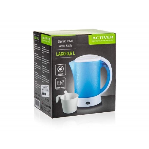 Varná kanvica LAGO, s objemom 0,6 l, je praktický model na cesty. Súčasťou balenia sú dve šálky a lyžičky. Má moderný dizajn z polopriehľadného plastu s kvetinovým dekorom a ochranou proti prehriatiu, automatické / manuálne vypnutie a svetelný indikátor prevádzky. Dodávaná v modro-bielej farbe.