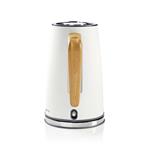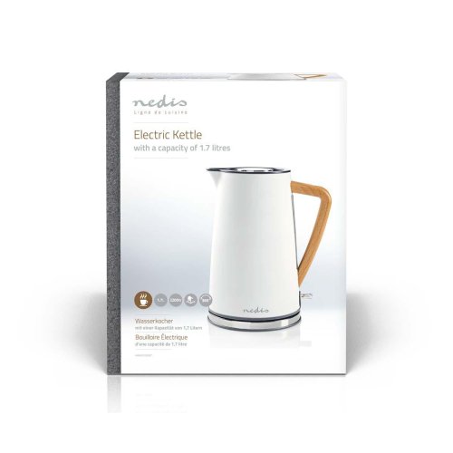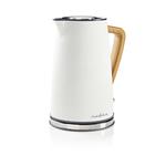 Štýlová rýchlovarná kanvica s objemom 1,7 litra . Skryté výhrevné teleso s výkonom 1850 až 2200 W a vyberateľný filter vodného kameňa zaručujú, že voda vždy rýchlo dosiahne varu. Medzi ďalšie prednosti patrí otočná 360 ° základňa a ochrana zamedzujúca zapnutiu kanvice, v ktorej nie je dostatok vody. Vďaka kombinácii nerezovej ocele, dreva a gumy (Soft-Touch) predstavuje táto kanvica štýlový, odolný a ľahko umývateľný doplnok do vašej kuchyne. Prívodný kábel je možné navinúť na základňu na pohodlné skladovanie.