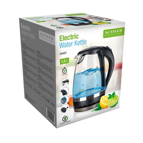 Kanvica rýchlovarná SHADY 1,5 l, skl./ČER, LED, 1850 - 2200 W.