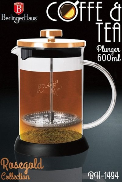 Kanvička na čaj a kávu French Press 600 ml Rosegold collection BH-1494