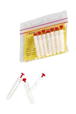 Kanyla Strukov BOVIVET lubrikovaná, priemer 5,5mm, dĺžka 35 mm. Jednotlivo balené v plastovom puzdre. Pred dojením musí byť odstránená červená zátka.