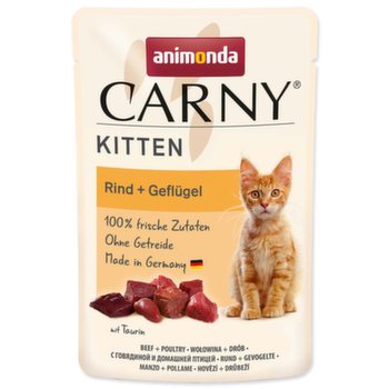 Chutné vrecko pre mačiatka Animonda Carny Kitten. Obsahuje optimálny pomer nutričných hodnôt pre výživu rastúcich mačiatok v prvom roku života.