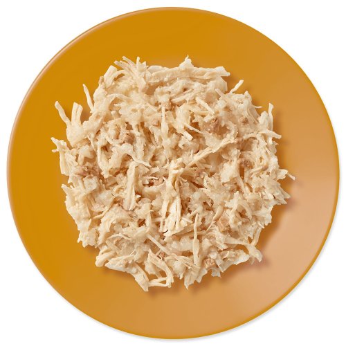Mäso a živočíšne produkty (kuracie prsia 55%, kuracia pečeň 7%), rastlinná želatínová zložka 1%.