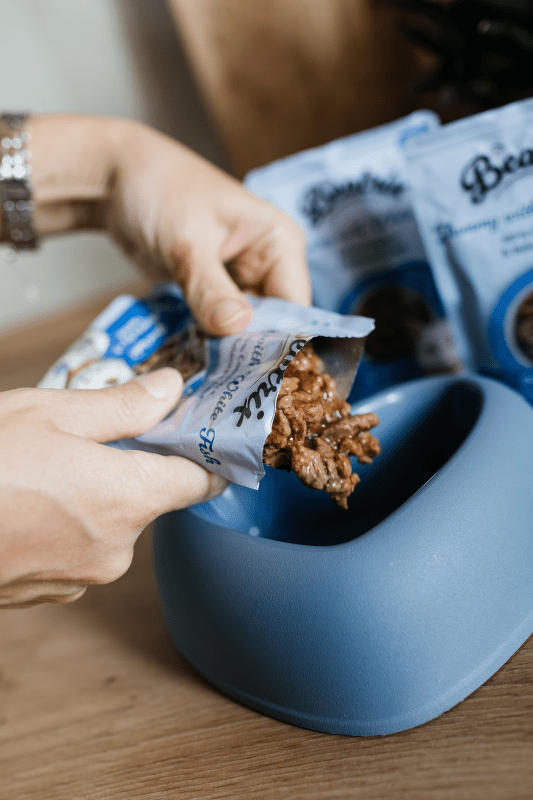 Áno, mokré krmivo je možné podávať spolu s granulami pre pestrejší jedálniček.