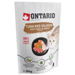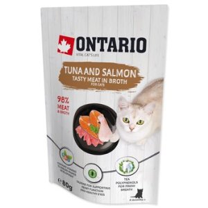 Doplnkové krmivo pre mačky s tuniakom a lososom vo vývare .