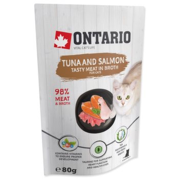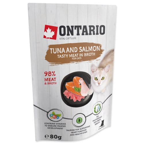Doplnkové krmivo pre mačky s tuniakom a lososom vo vývare .