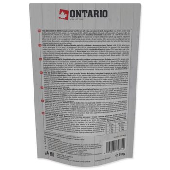 Mäso a výrobky živočíšneho pôvodu, ryby a výrobky z rýb 72,44% (tuniak 39,76%, kuracie mäso 30,28%, losos 2,4%), kurací vývar 25,712%, karagenan 0,78%, soľ 0, 4%, pšeničná múka 0,24%, škrob 0,22%, glycerín 0,12%, taurín 0,08%, extrakt z čaju 0,005%, vitamíny (A, B2, B3, B5, D3, E, polydextróza) 0,003%.