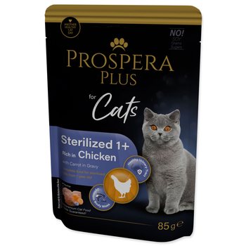Kompletné a vyvážené krmivo pre kastrované mačky od 1 roku v podobe kapsičky s kuracím a mrkvou v omáčke.