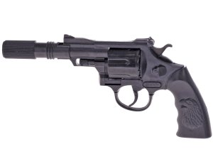 Každý malý pištoľník policajt potrebuje svoju pištoľ. Táto kapsula s tlmičom je správnou zbraňou pre všetkých malých ochrancov spravodlivosti. Kapsula meria 23 cm. Je na kapsule 8 rán.
