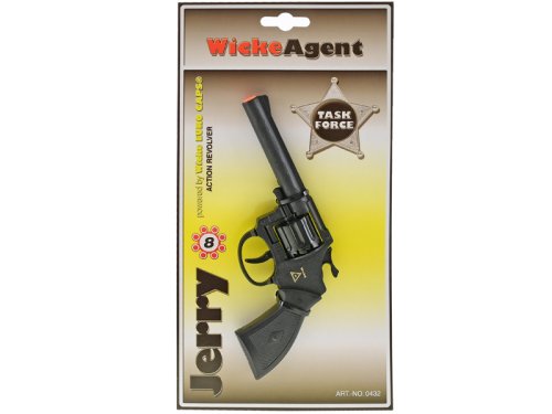 Kapsulová pištoľ Jerry pre malých bojovníkov a pištoľníkov. Zbraň je vyrobená z plastu a jej veľkosť je 19 cm. Kapsula je na kapsule 8 rán.