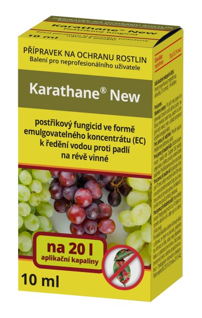 Karathane New je postrekový kontaktný fungicíd vyznačujúci sa kuratívnym, eradikatívnym a preventívnym účinkom na múčnatku viniča a súčasne obmedzujúci výskyt a škodlivosť roztočcov. Pôsobí unikátne proti prezimujúcemu mycéliu múčnatke vo vinohradoch a preto býva zaraďovaný aj do prvých postrekov.