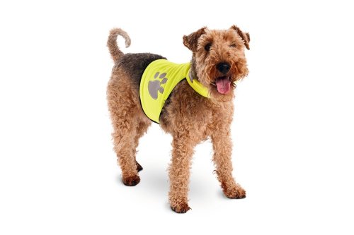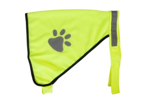 Fluorescenčná vesta s reflexnými pruhmi vo veľkosti S zaistí, že vaše večerné prechádzky so psom budú bezpečné. Signálne žltá farba a reflexné prvky v podobe pruhu a pacičky urobia maznáčika viditeľným aj v tme.